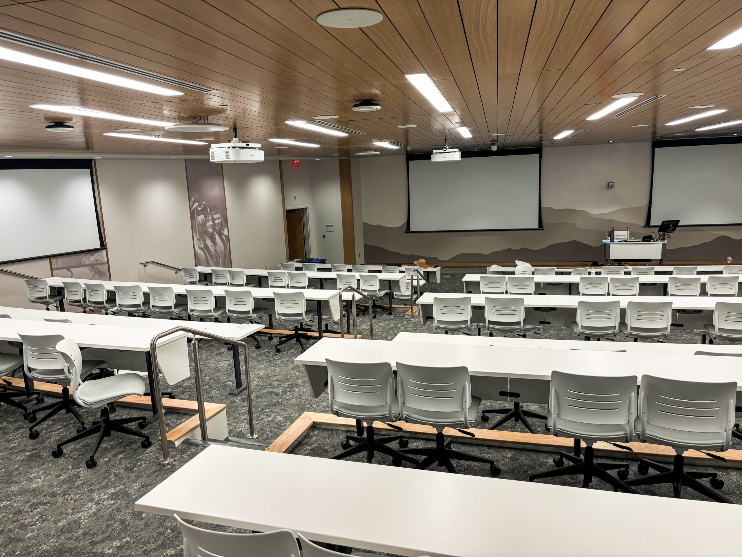 CIRCUM™ One-Line was surface-mounted down the center of the stair and in the lecture rooms, combining sleek design and robust structural support. Konic™ was weld-mounted to the stair stringers and upper balconies, creating a seamless transition between levels.