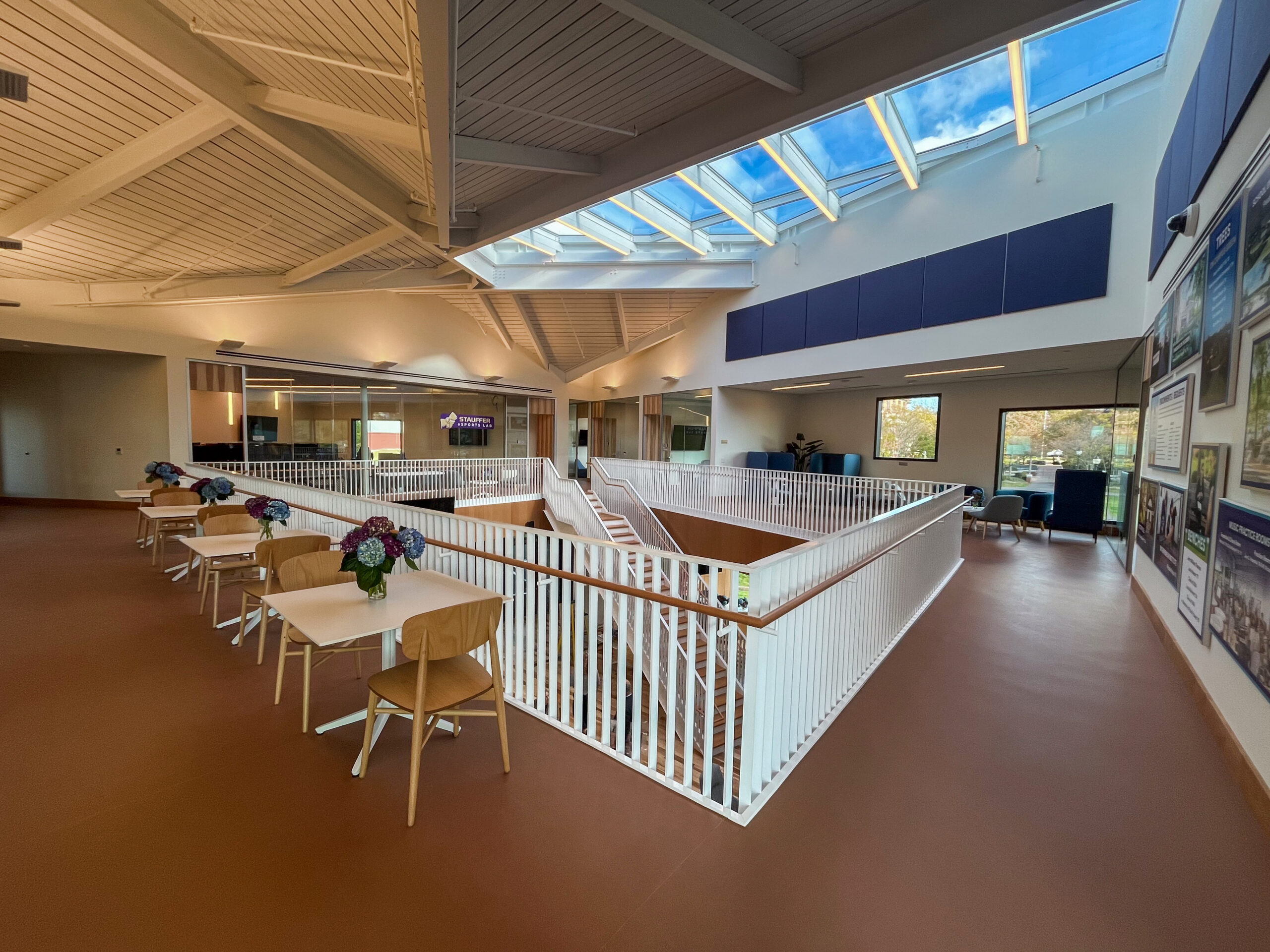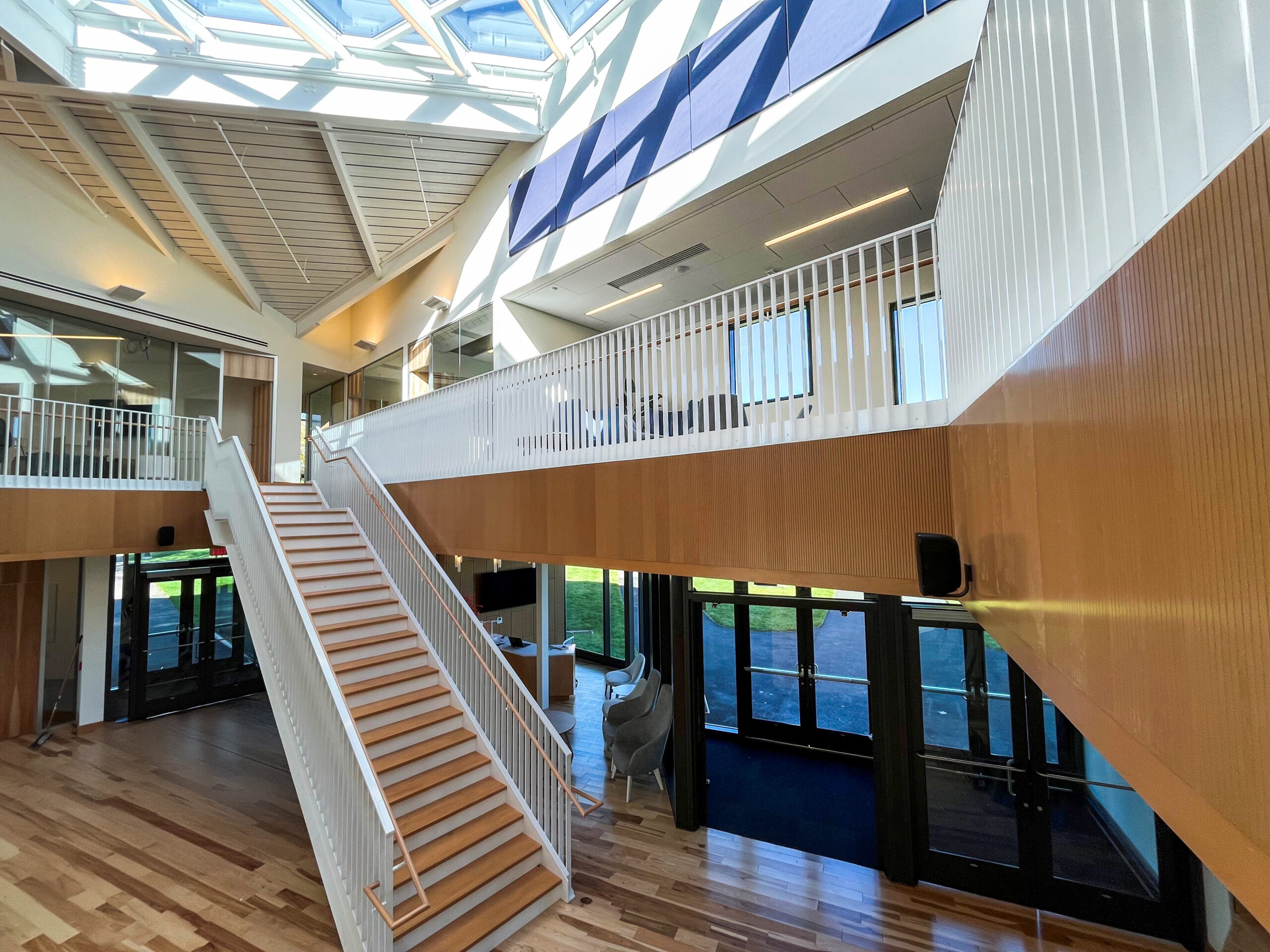 Perkiomen School’s new Student Welcome Center was envisioned as the campus’s connective heart—a space where academics, student life, and creativity intersect. Designed by Flansburgh Architects, the four‑gabled 18,000 sq ft building offers students a central destination for collaboration, support, and expression.